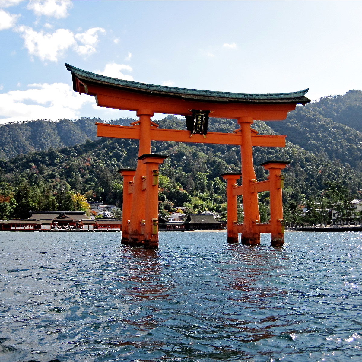is famous for Itsukushima Shrine Torii gate on the sea.